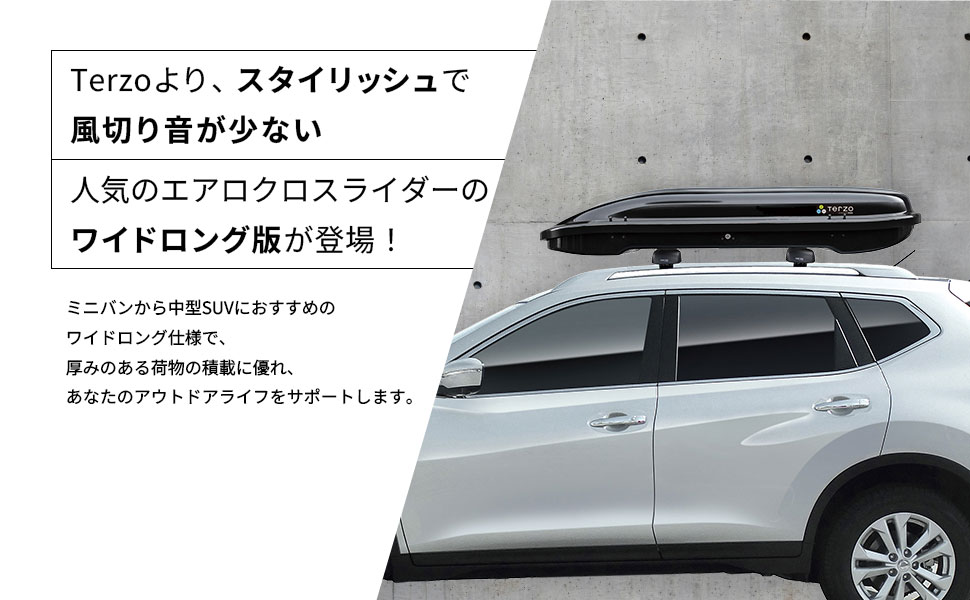 TERZO(テルッツォ)おすすめのルーフボックスは『エアロクロスライダー ワイドロング』です。