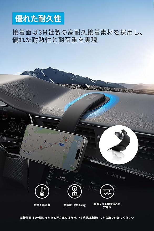 - 車の走行中や急な曲がり角でも、スマホを確実に固定することができ、安心して操作することができます