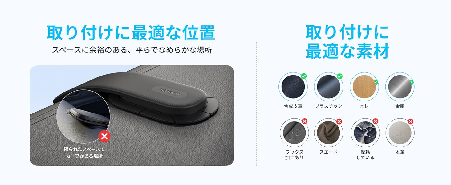 - 粘着式じゃないので車内の暑さや熱に強い(吸盤タイプとは違う)