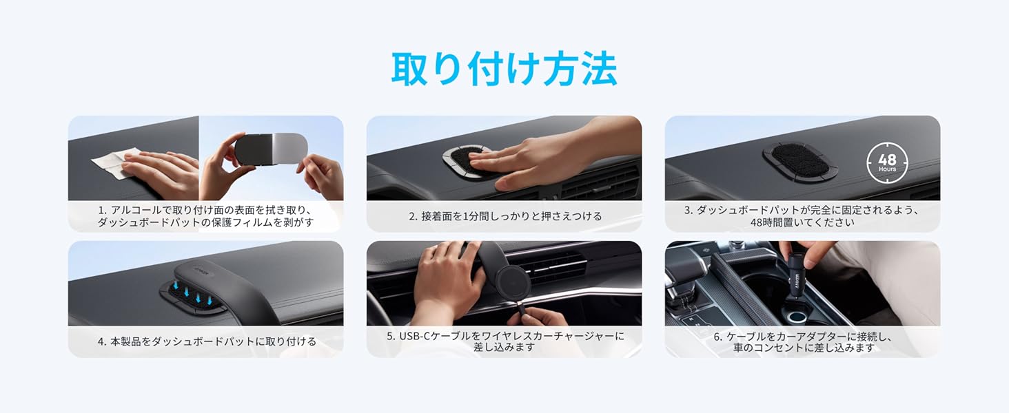 - スマホがホルダーを置くだけですぐに充電可能で、運転中でも快適に充電できます