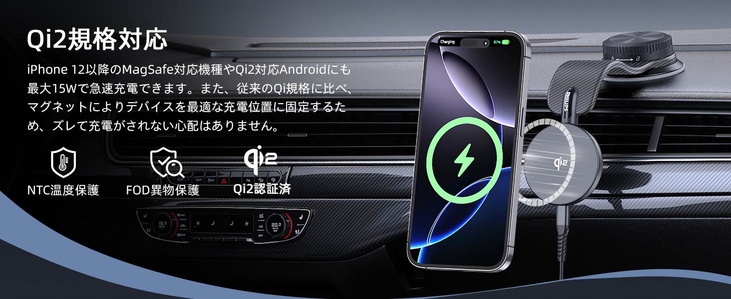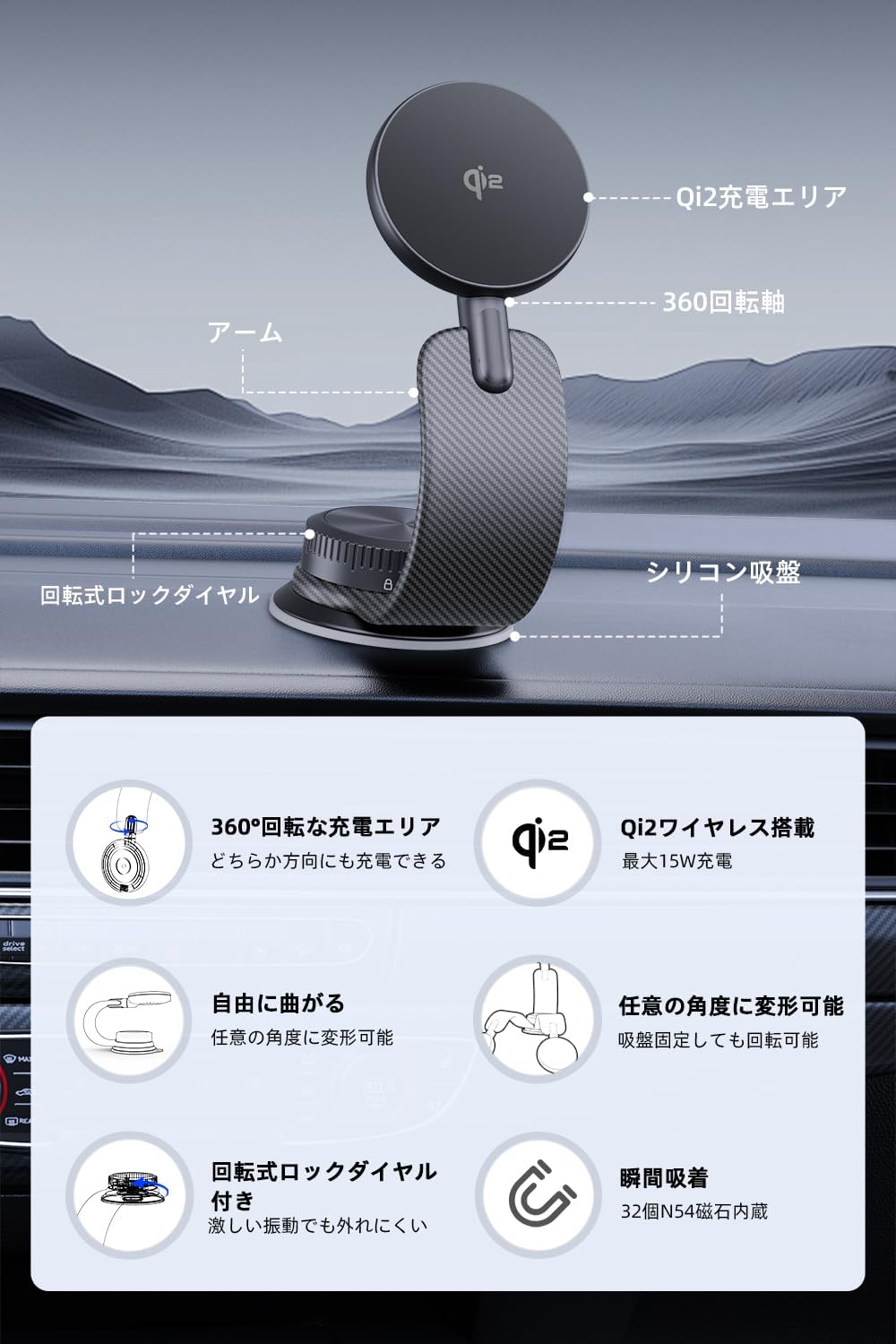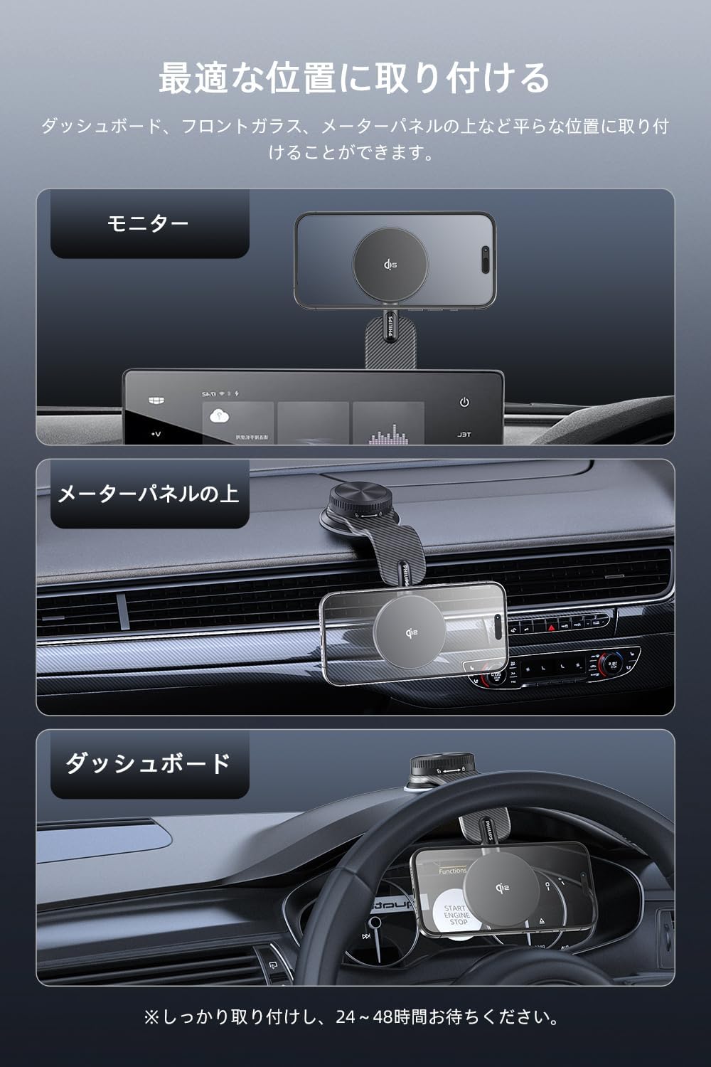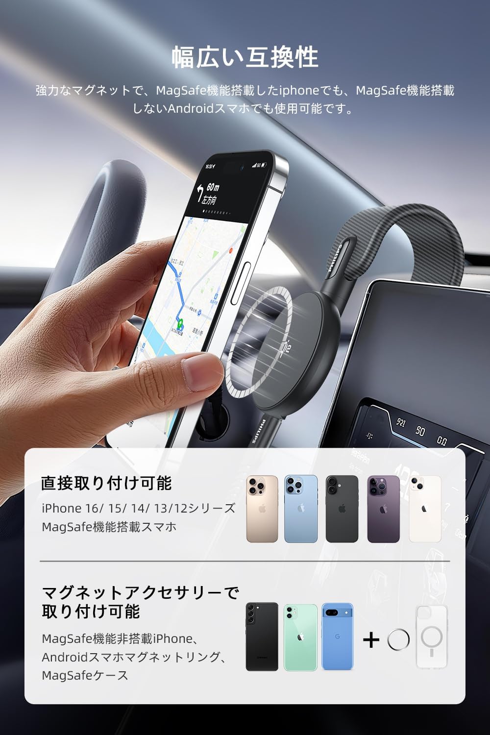 - スマホがホルダーを置くだけですぐに充電可能で、運転中でも快適に充電できます
