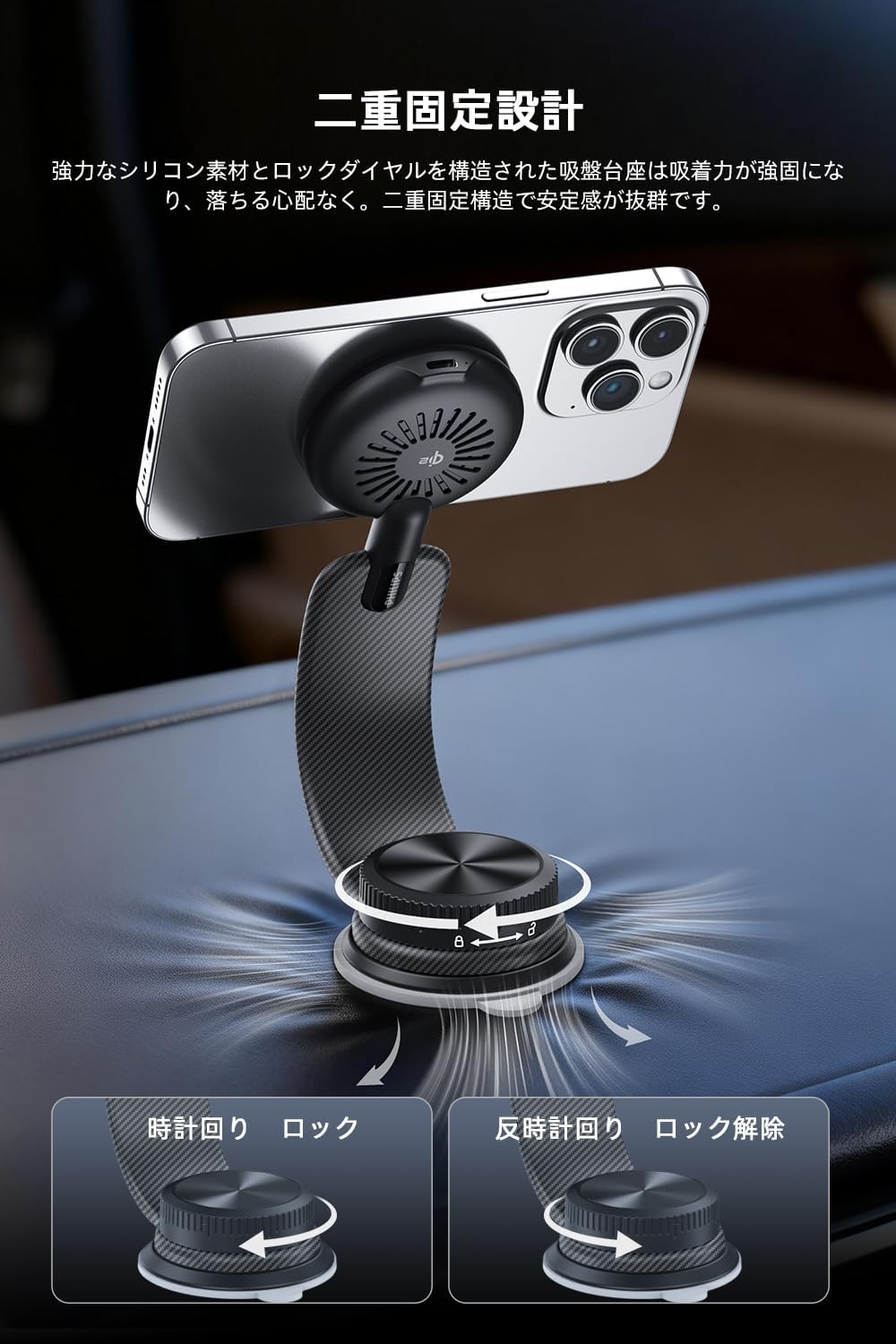 - 車の走行中や急な曲がり角でも、スマホを確実に固定することができ、安心して操作することができます